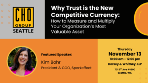 In this session, SparkEffect’s President & COO Kim Bohr will take you inside its cutting-edge study on organizational trust. This deep dive into our new research reveals a striking truth: companies that navigate disruption well don’t just safeguard trust, they actually grow it beyond baseline levels, unlocking stronger teams, stickier cultures, and more resilient performance. Those that stumble in crisis? They don’t just lose trust, they put their entire business at risk.